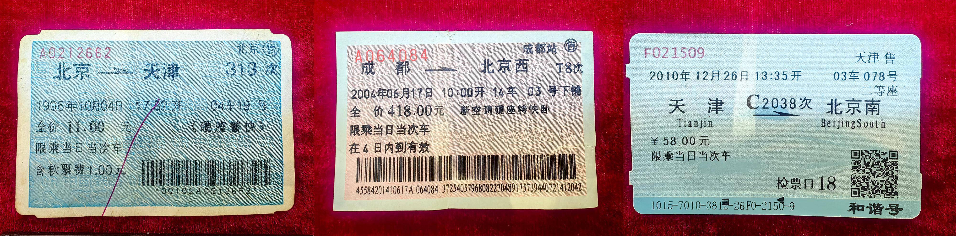 拼版照片,1996年、2004年、2010年的纸质火车票。(中国铁路太原局集团有限公司供图)